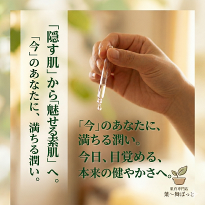 ![]() 稲城市/敏感肌の方も通える 肌質改善・肌育専門店・毛穴 葉~舞ぽっと です 長年、肌くすみ・乾燥・毛穴・と向き合ってきた お客様 当サロンのお客様のご紹介で ご来店いただきましたのが 約、1年と少し前でした それから、月1回のペースでサロンケアを 続けていた ある日・・・ 今年こそは、友人にも『アッ!』と 驚かれるくらい、美肌に変身したいのよ~ と、本気モード 私は、その言葉を・・・ 本気でおっしゃているわッ 直感で感じました 待ってました! そう~きましたか(笑) 二人三脚で、やっていきましょう~ 私もお客様の気持ちに応えるために 全力で、サポートをさせていただきます まず、 お客様がサロンに通うスタンスは 月1度です それで、充分です サロンケアも大切ですが、 もっと大切なのはホームケアです 3ケ月間は、継続してくださいね サロンケア & ホームケアでじっくりと 肌を育んでいきましょう~ 肌が本来もっている 【美しくあろうとするサイクル】を サポートいたします 心よく、承諾なさってくださり 二人三脚で、持続する美肌サポートは つづきました 約、1ケ月後肌が変わりはじめます キメの一つ、一つが潤いで満たされ 内側から輝くような透明感のある肌へ 内側から輝く水光ヴェール肌へ まさに タイムレスケアになりました (*個人差はございます) 潤いでキメが整い始め、滑らかな肌へ ![]() 年齢肌を輝きに変える肌育後 ![]() ご感想です 諦めなくて良かった ある、お客様の3ケ月間の奇跡 ![]() お客様の「ご感想」については エピソードがございまして 後日Blogに書きます^^ ![]() ![]() |